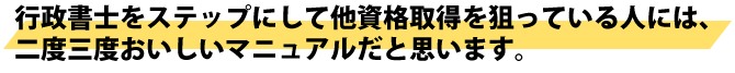 行政書 士をステップにして他資格取得を狙っている人には、二度三度おいしいマニュアルだと思います。