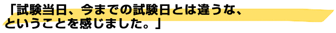 試験当日、今までの試験日とは違うなということを感じました。 それほど不安が無かったのです。
