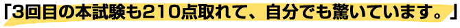そして 3回目の本試験も210点取れて、自分でも驚いています。