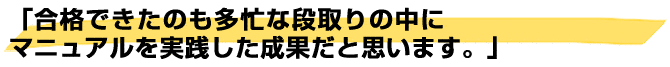 合格できたのも多忙な段取り中にマニュアルを実践した成果だと思います。