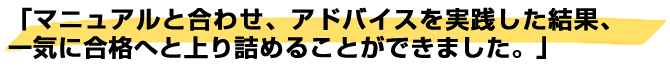 マニュアルと合わせ、アドバイスを実践した結果、一気に合格へと上り詰めることができました。