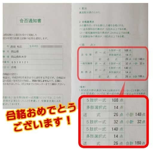 平成24年度180点へと一気に合格へと上り詰めることができました。