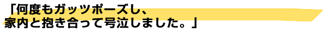 何度もガッツポーズし、家内と抱き合って号泣しました。