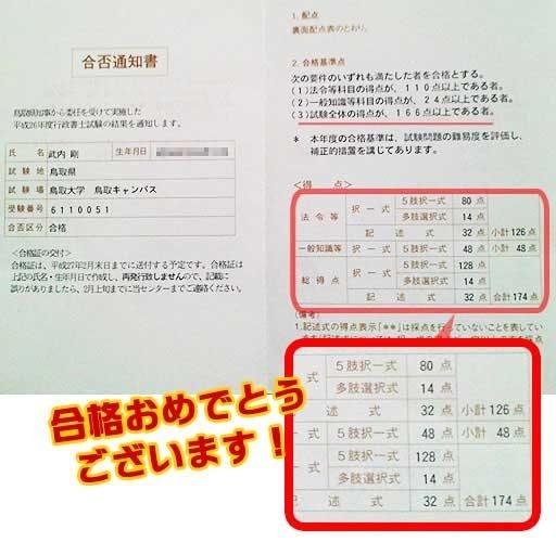 しかし、合格基準点が、法令が「110点」に、合計点が「166点」に下がる