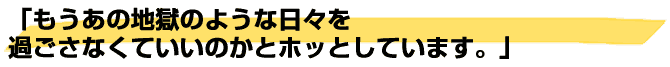 もうあの地獄のような日々を過ごさなくていいのかとホッとしています。