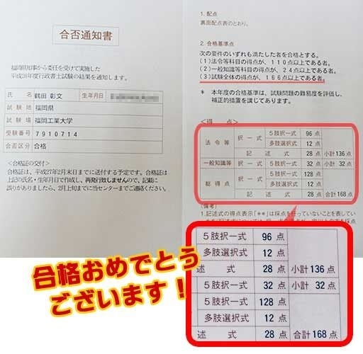 ※この年は例年よりも難易度が高かったため、補正措置により166点以上で合格となりました。