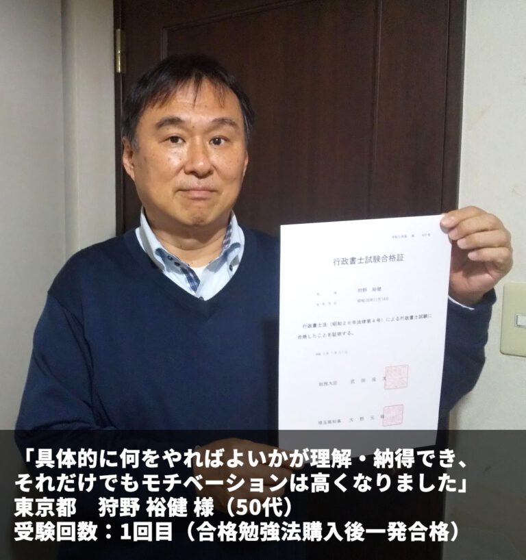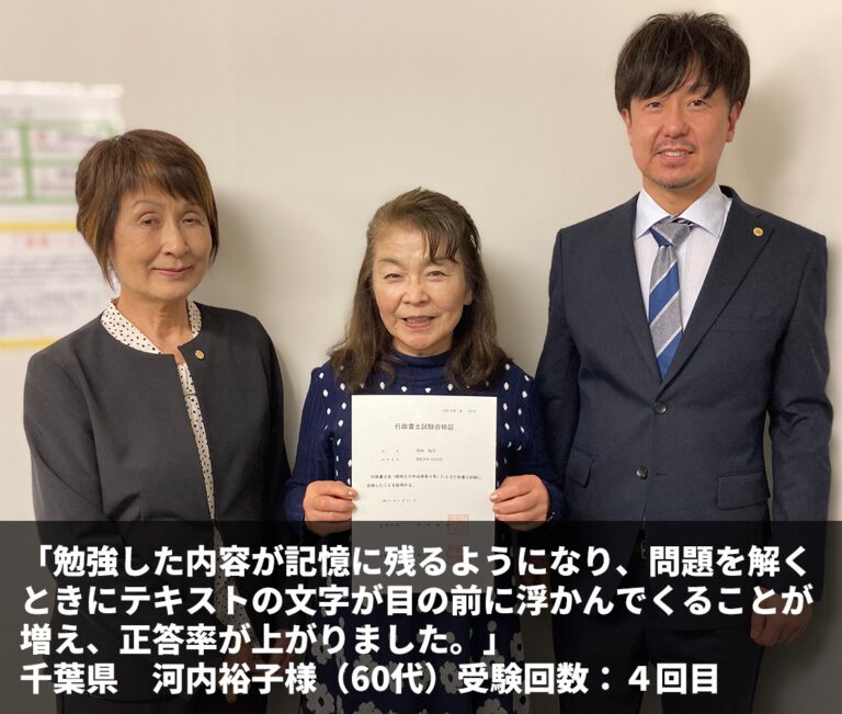 『合格勉強法を実践すれば必ず合格できると実感した瞬間でもありました。』 茨城県 渡邉真澄様(60代) […] -