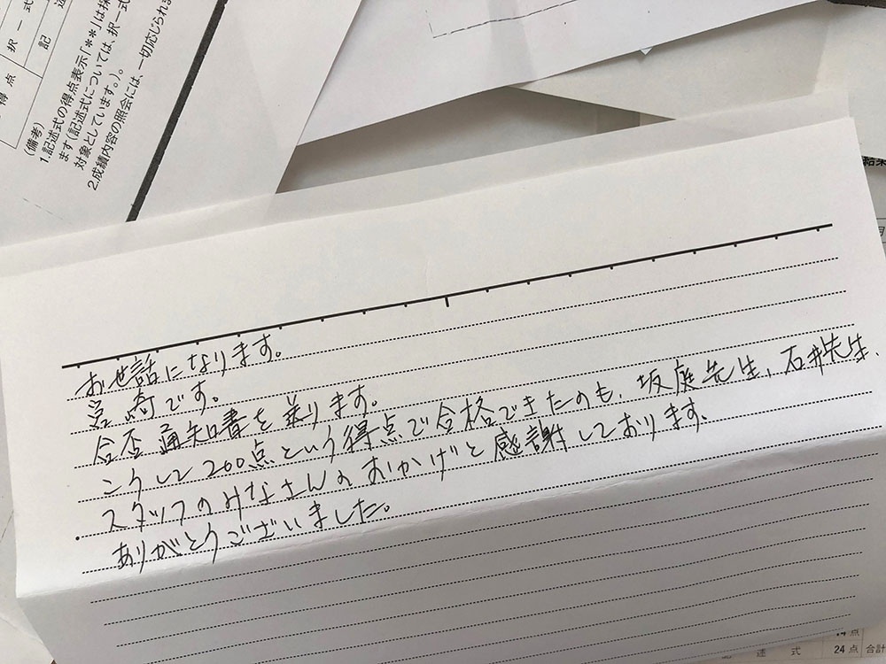 徐々に力がついていくのが分かりました。感覚で問題を解いていたのが、自分なりに理屈をもって解答できるようになったからです。合格した瞬間の感想は、ひとまずホッとしたというのが本音です。
