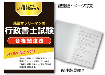 勉強法(マニュアル)は毎年改訂しますが、一度ご購入いただくと、3万4,560円の勉強法(マニュアル)の改訂版(最新版)を合格するまで、毎年無償で配布しています。