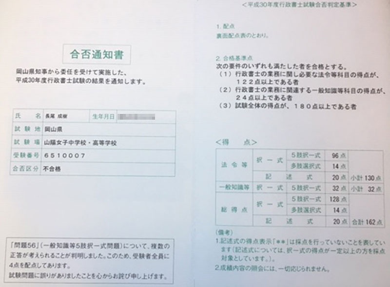 坂庭先生の「勉強しなきゃをやめてみよう」というアドバイスをしていただいて4回目の挑戦でしたが、自己採点で合格ラインギリギリでした。