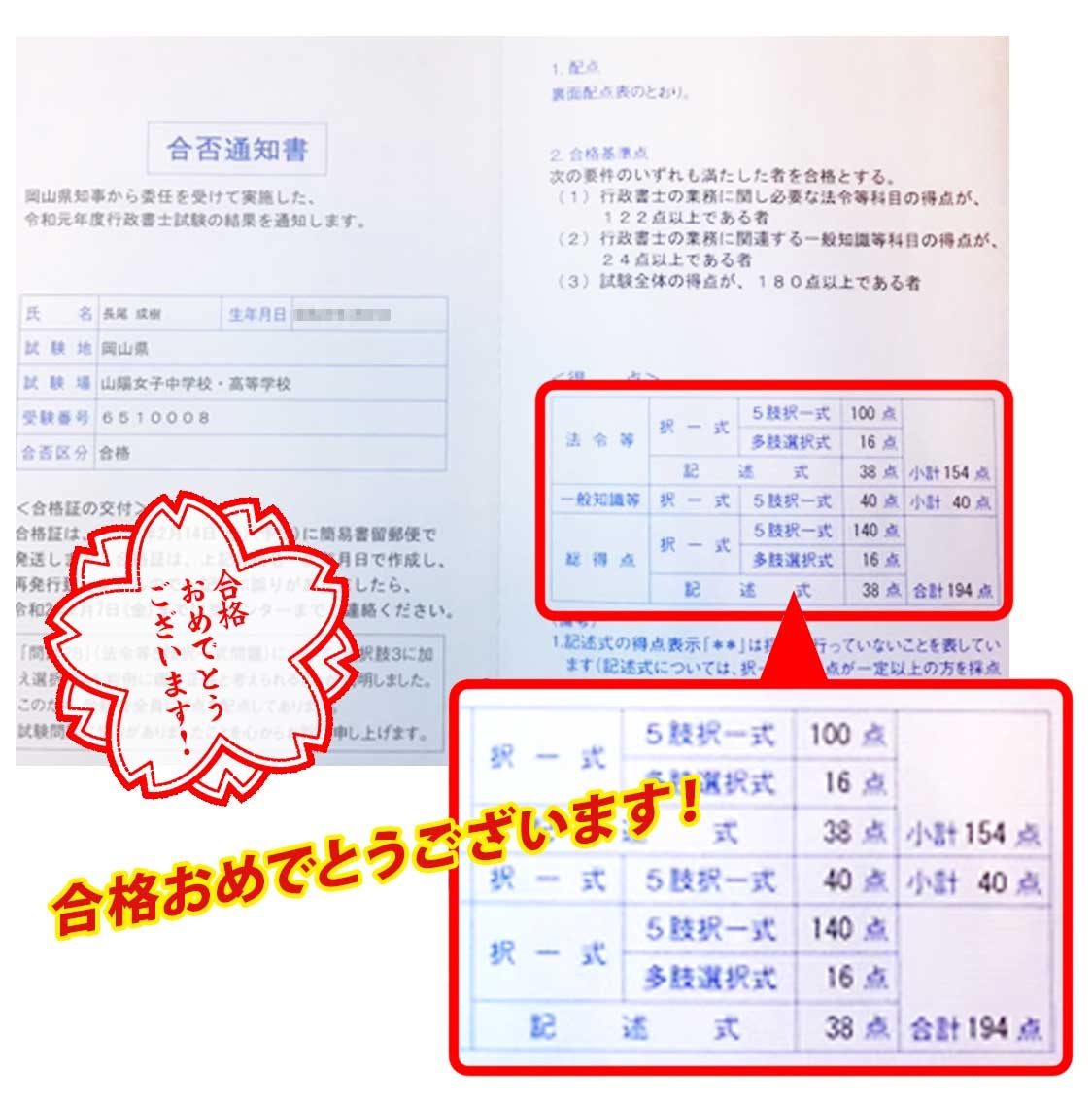 『合格発表で自分の受験番号を目にしたときは、妻と抱き合って喜び、妻の胸で泣きじゃくってしまいました。』