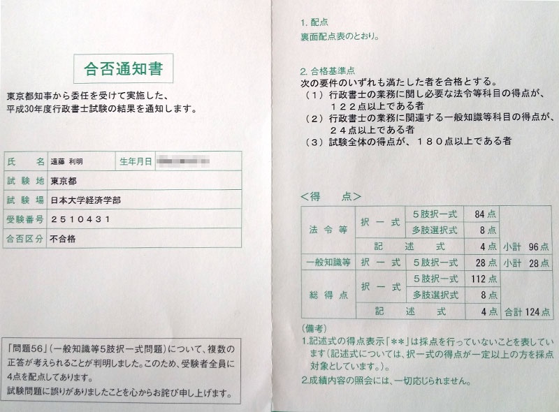 自己採点では、178点で不合格と思っていましたが、180点で合格していたので、宙に舞い上がる感じでした。