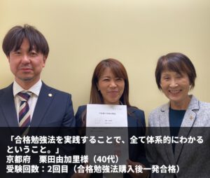 『勉強法に出会ったからは、やるべきことが全部書いてあるので、「この通りやれば、合格できるのだ!」と強い希望を持てました。』