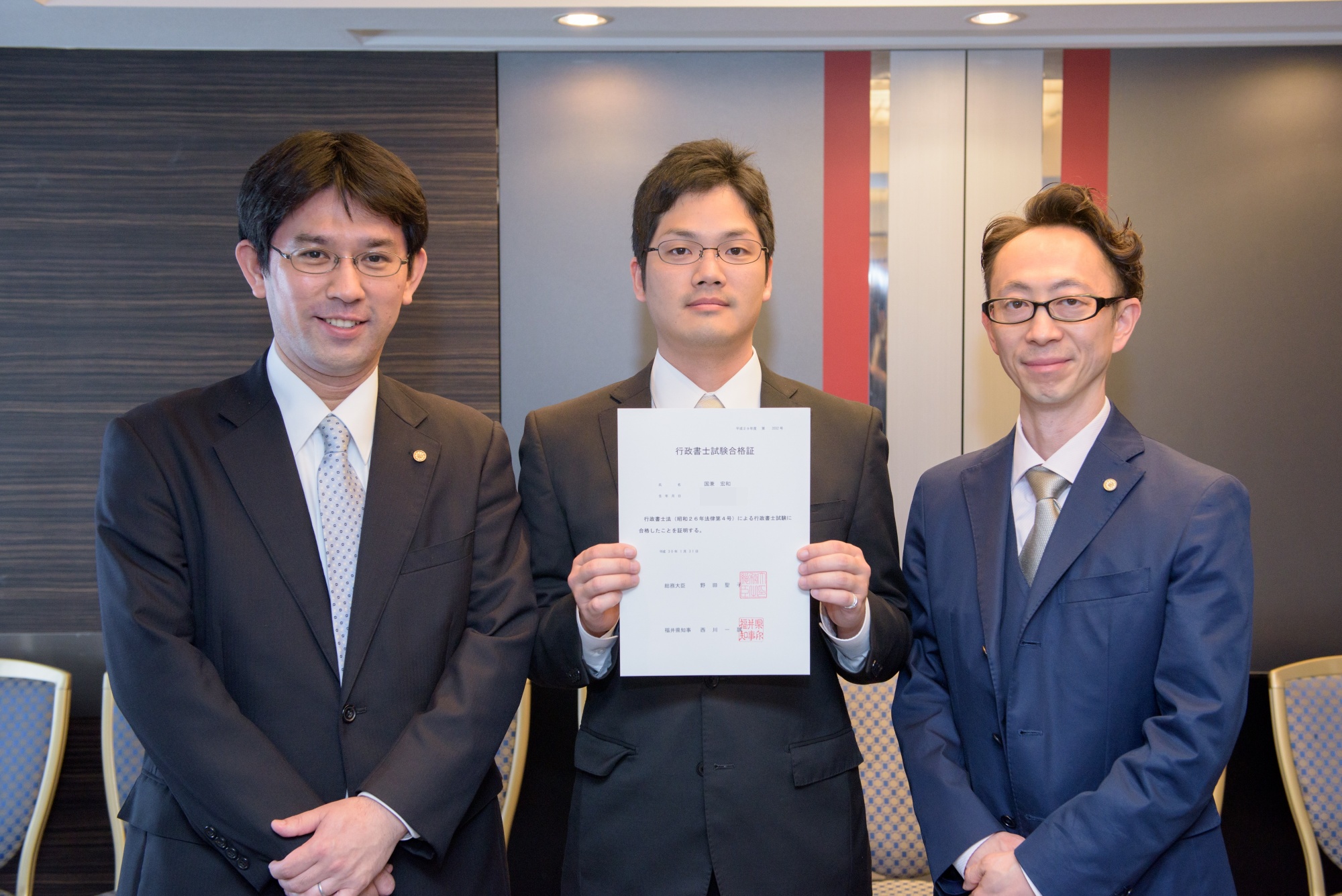 合格発表当日、移動中に、行政書士試験研究センターのサイトを開いて、自分の番号を見たとき、外にも関わらず、思わず「ヨシッ!!」とガッツポーズをしてしまうぐらい嬉しかったです。と同時に、「よかった、これで次のステップに進める」と安堵したことを強く覚えています。